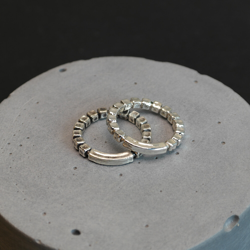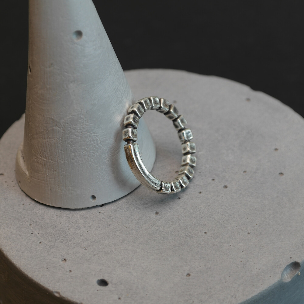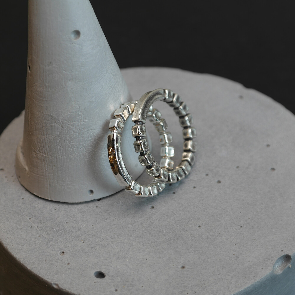 네츄럴하고 러프한 박스들로 유기적인 형태로 디자인한 반지