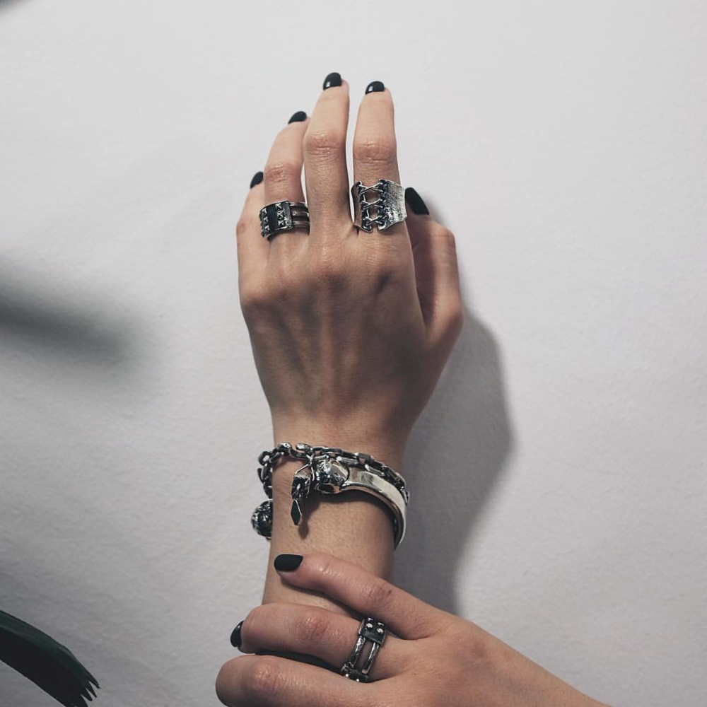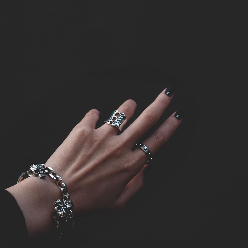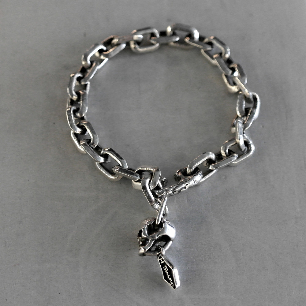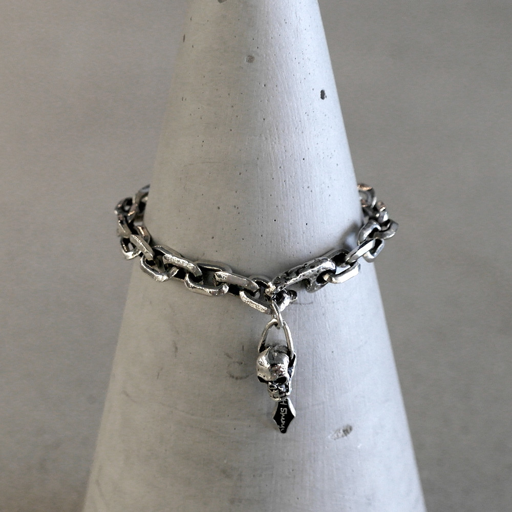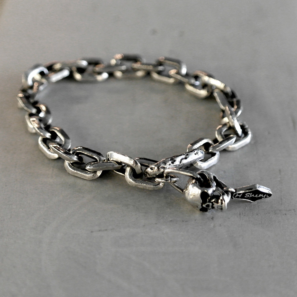 핸드메이드 체인으로 제작된 스컬 포인트 팔찌는
