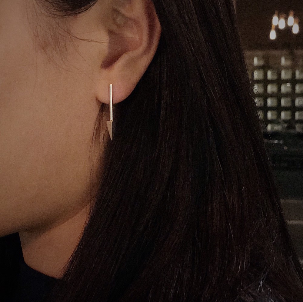 애로우 쉐입 수제 실버 귀걸이 입니다. 언발란스한 구성으로 다른 실버 귀걸이와 믹스매치 가능합니다.