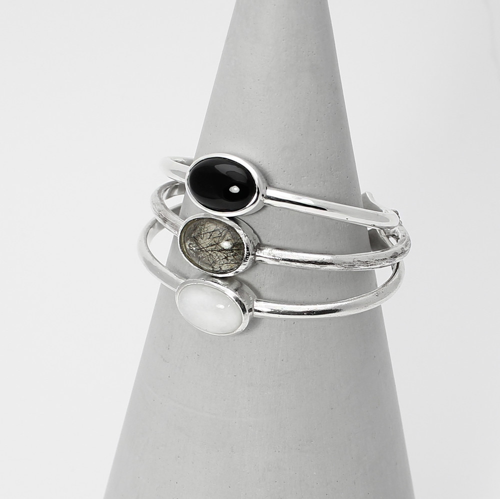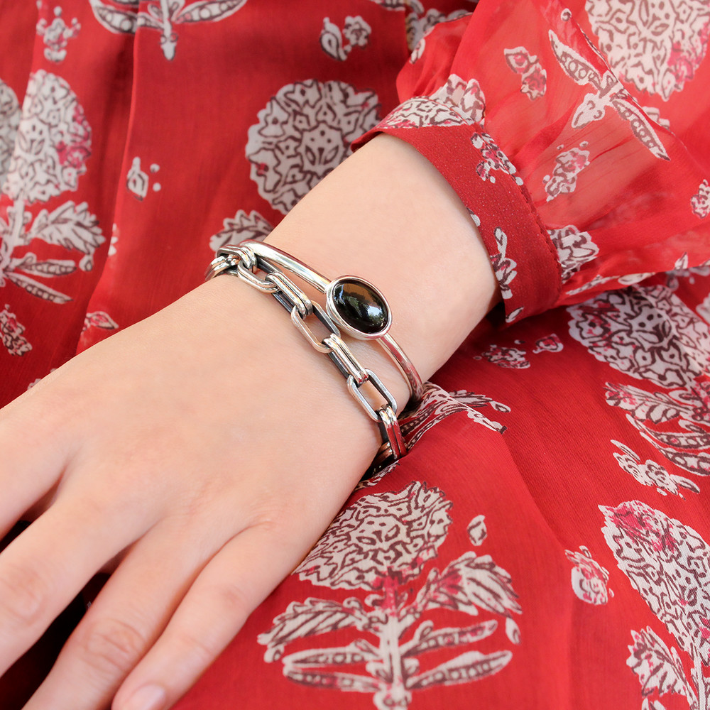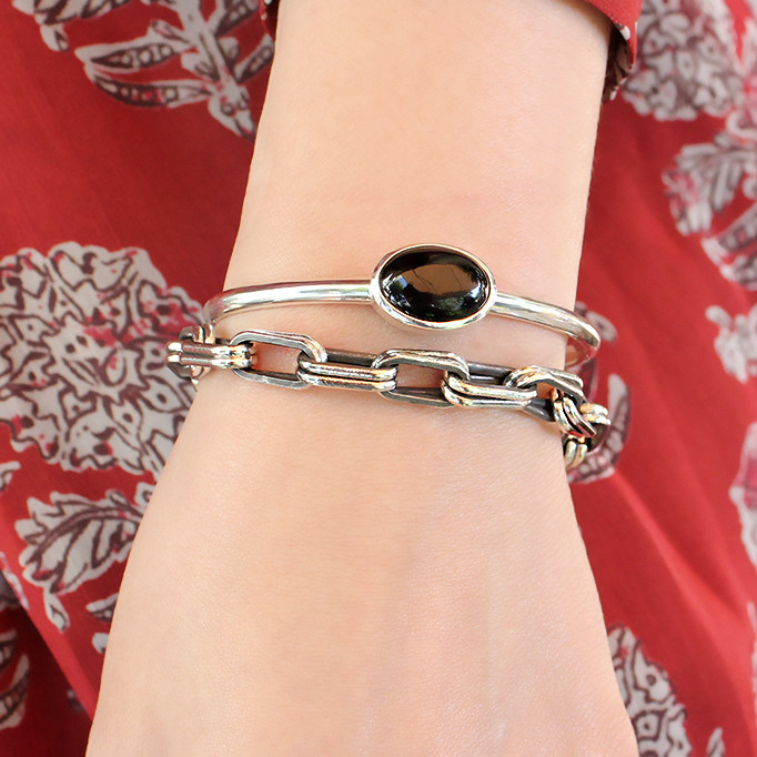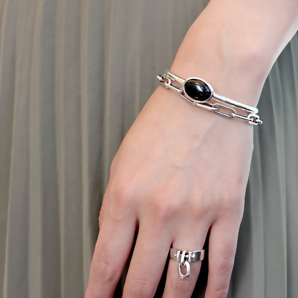 블랙 오닉스가 매력적인 오픈형 뱅글입니다.