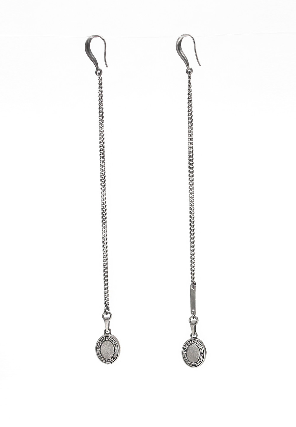아즈텍 문양을 형상화한 디테일이 적용된 롱 체인 드롭 이어링입니다.