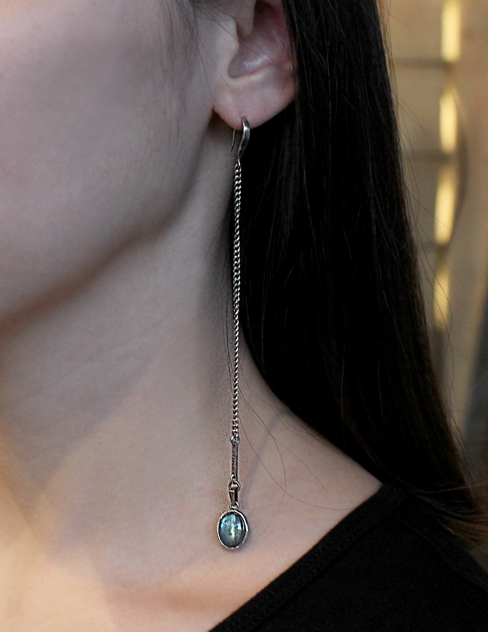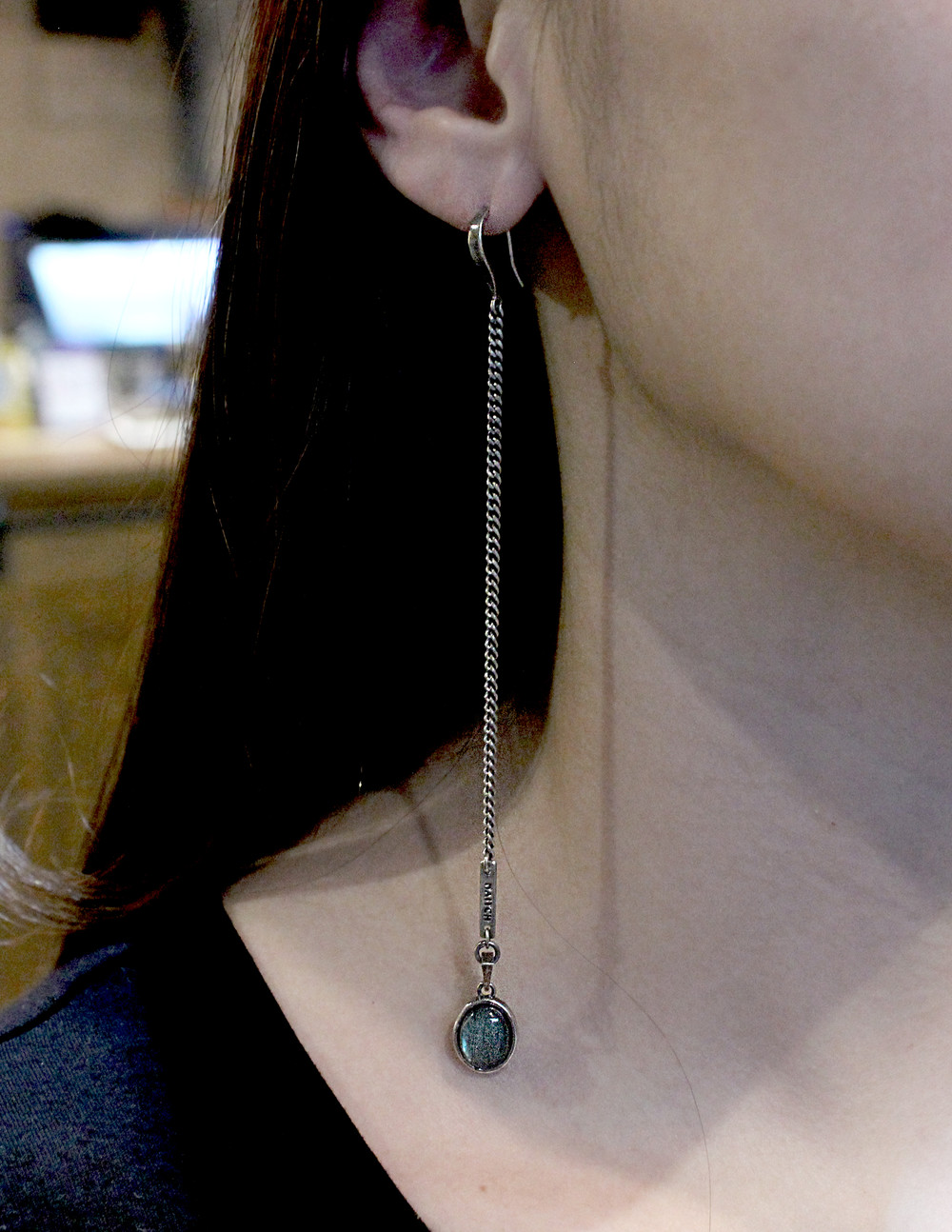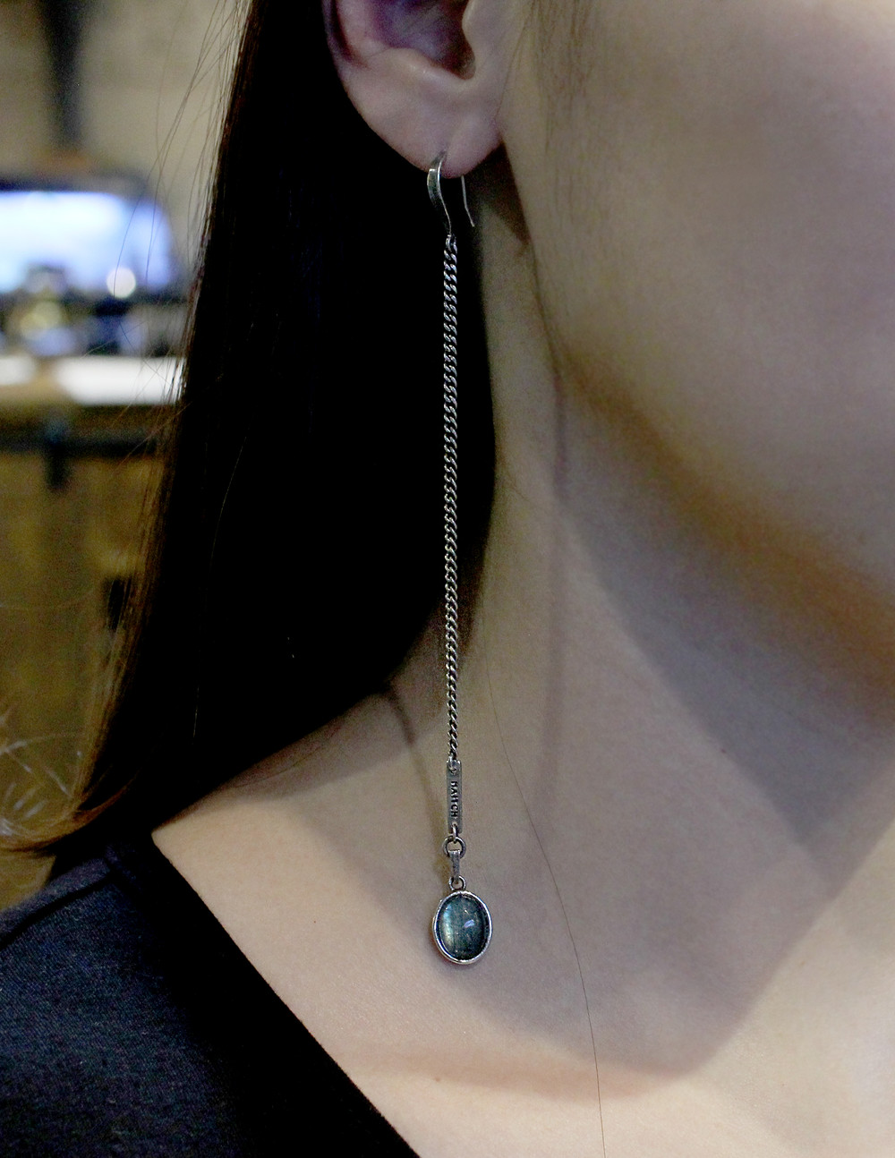 신비로운 푸른 빛이 빛나는 유니크한 원석 이어링입니다.