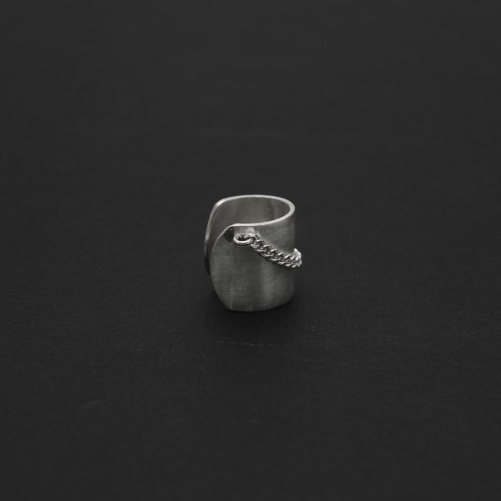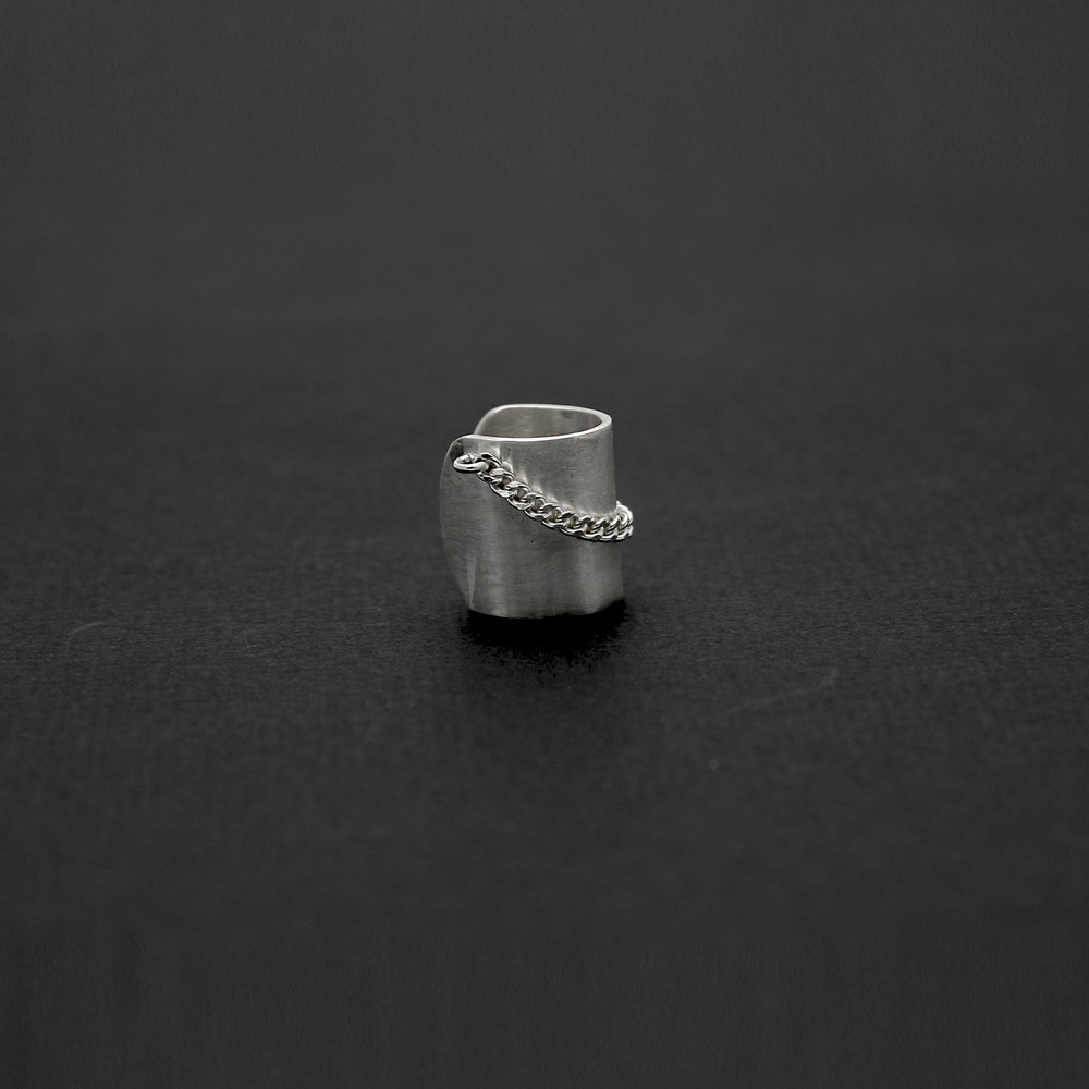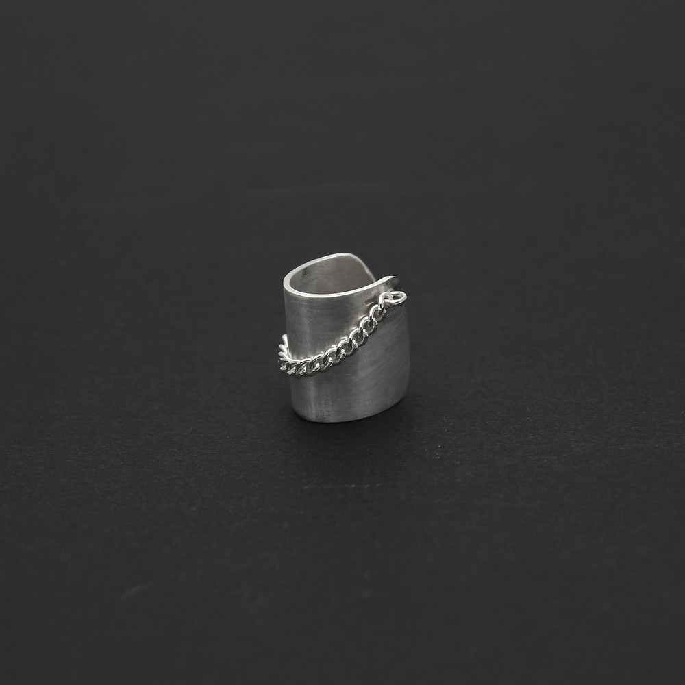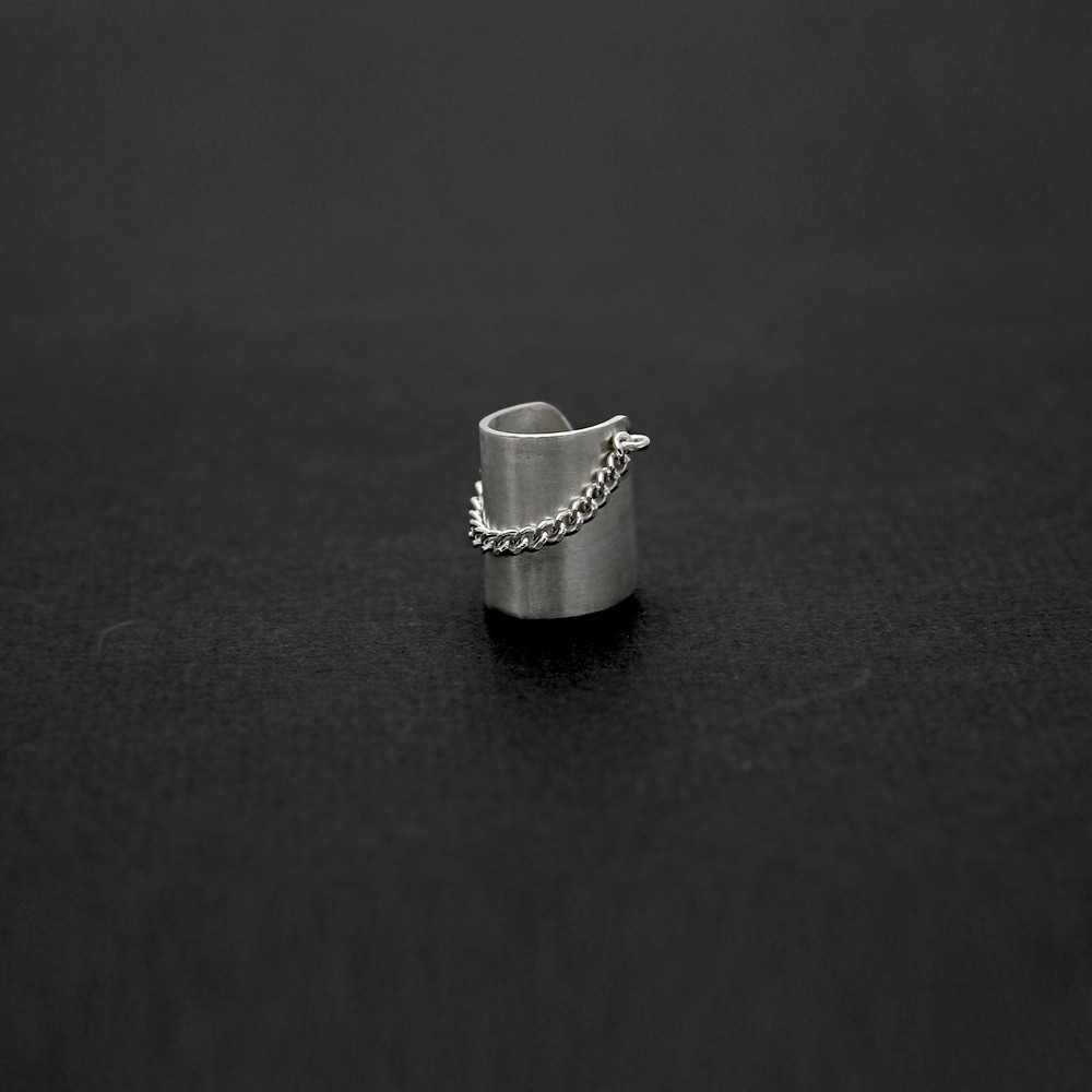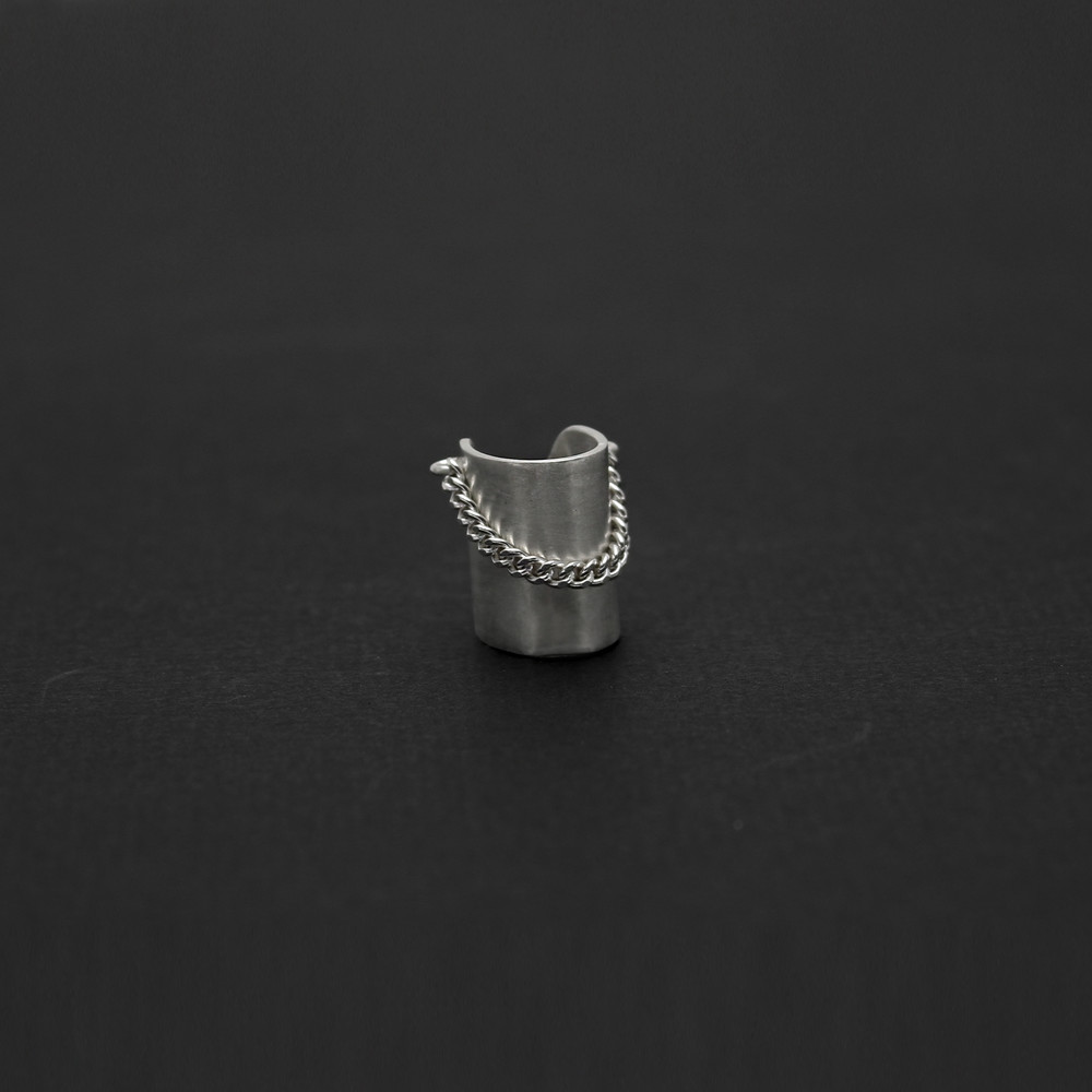 체인 디테일이 적용된 실버 이어 커프입니다.