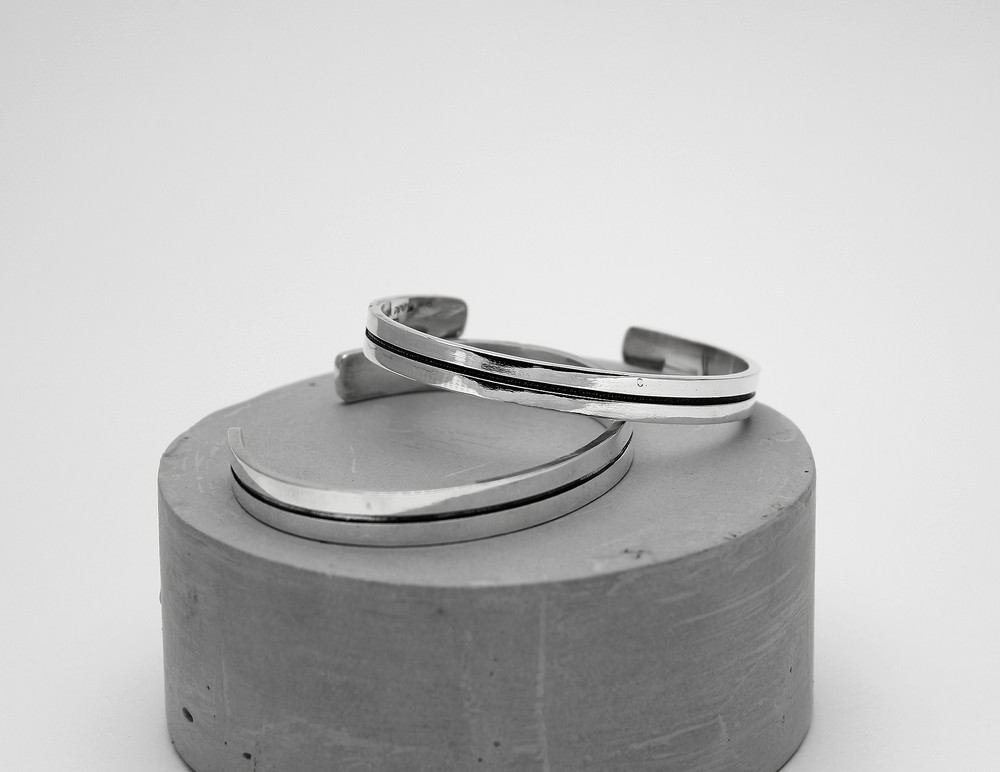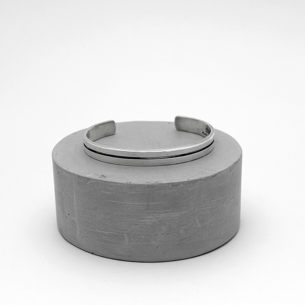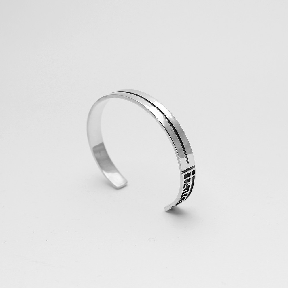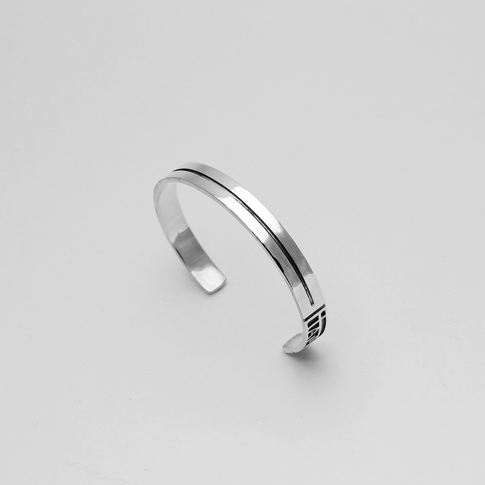 라인 디테일 포인트가 적용된 오픈형 실버 뱅글 팔찌 입니다.