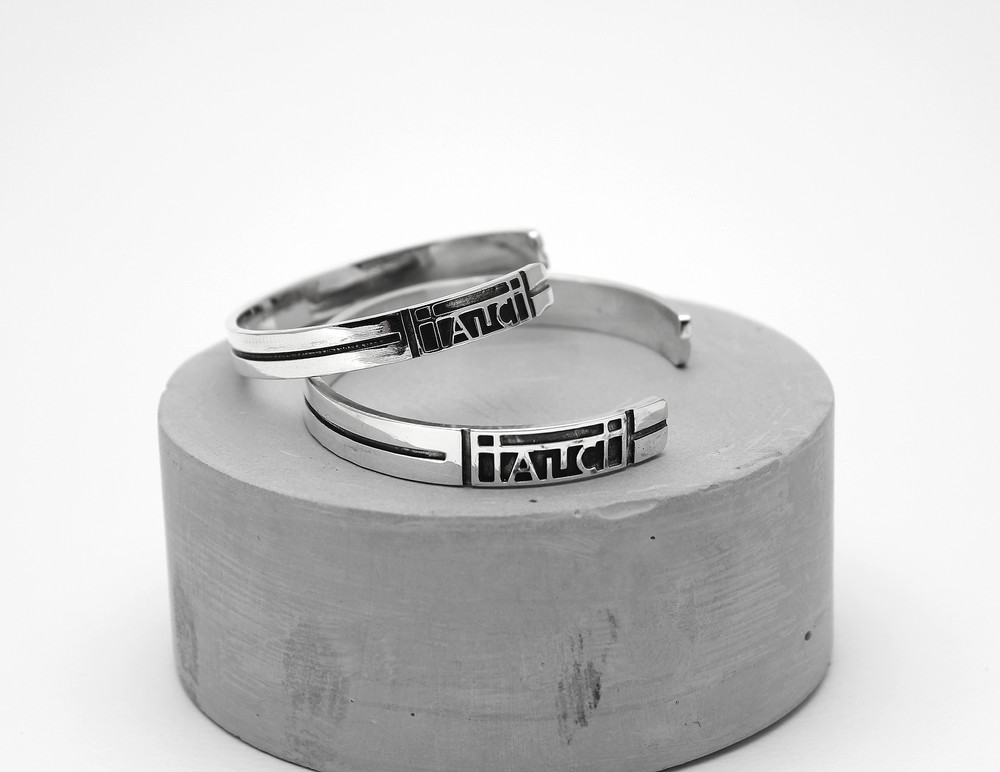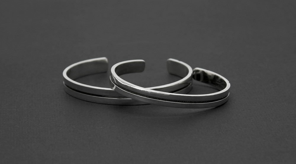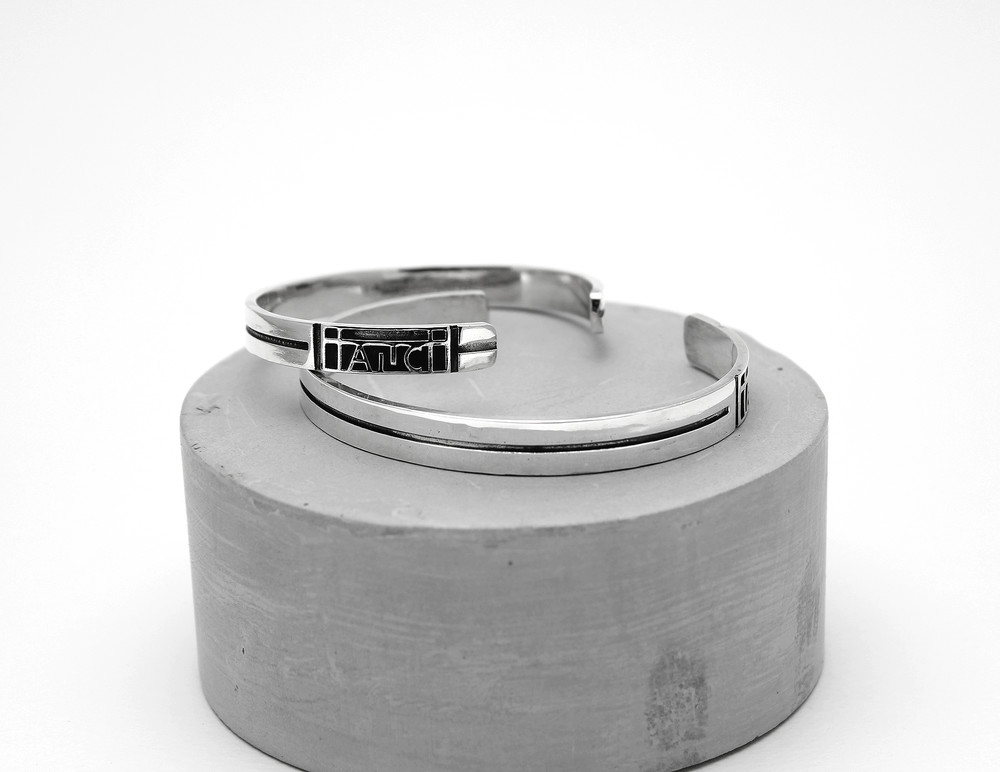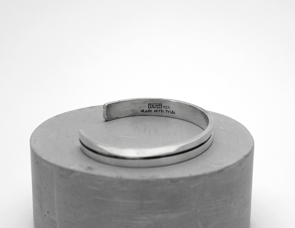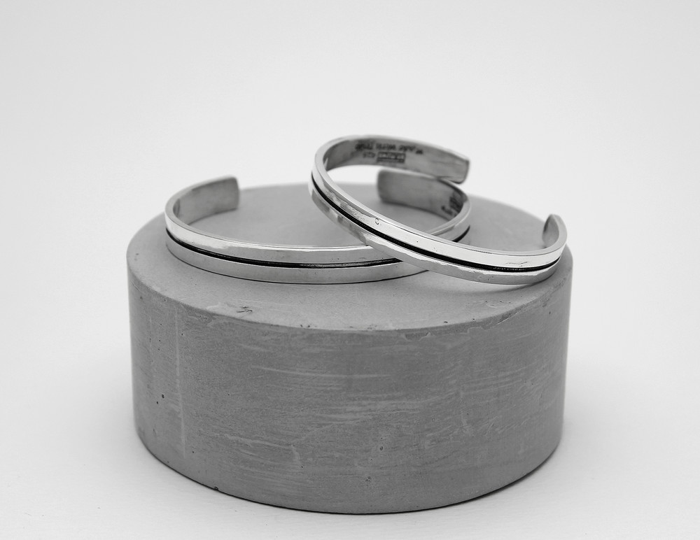 라인 디테일 포인트가 적용된 오픈형 실버 뱅글 팔찌 입니다.