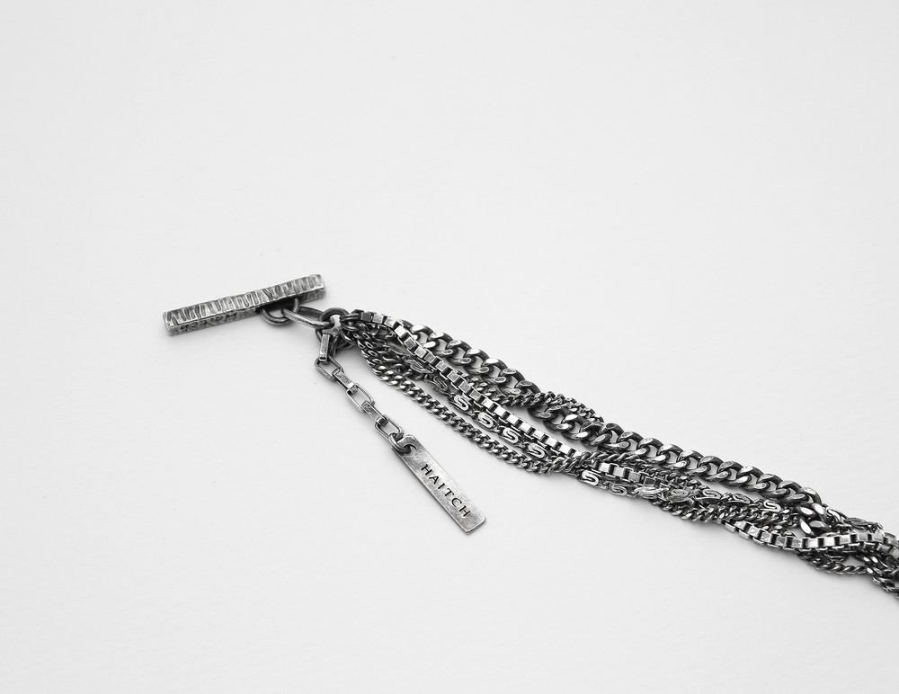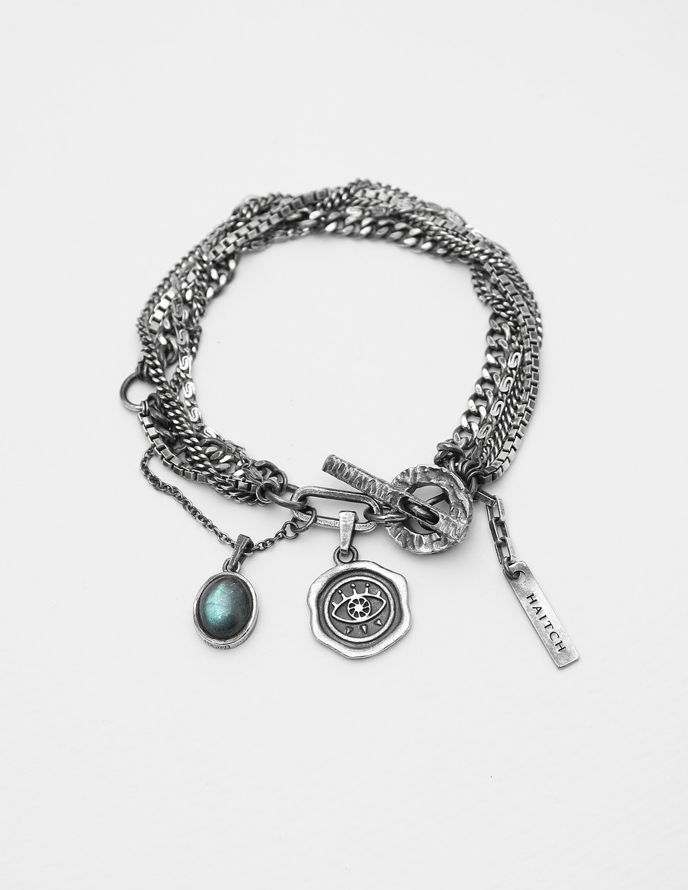 5줄의 서로 다른 체인이 레이어드된 참 펜던트 팔찌 입니다.