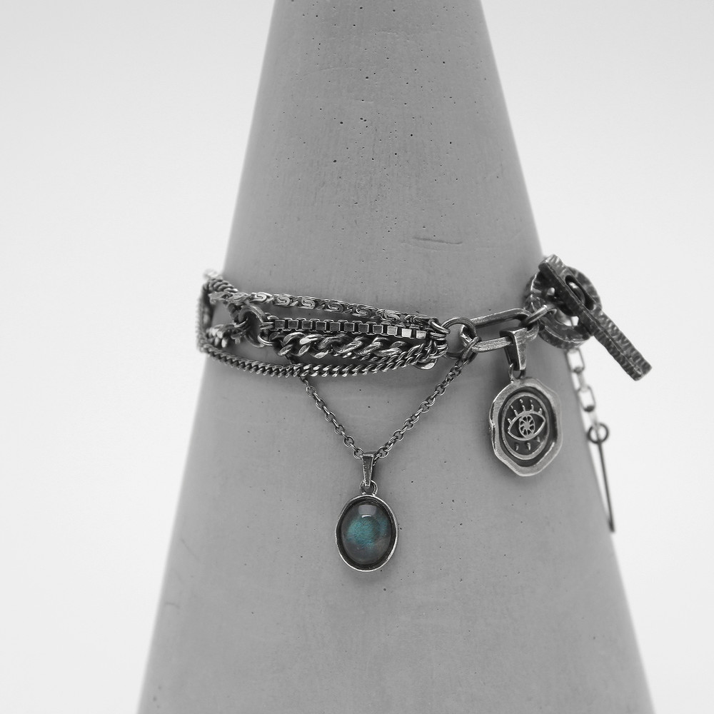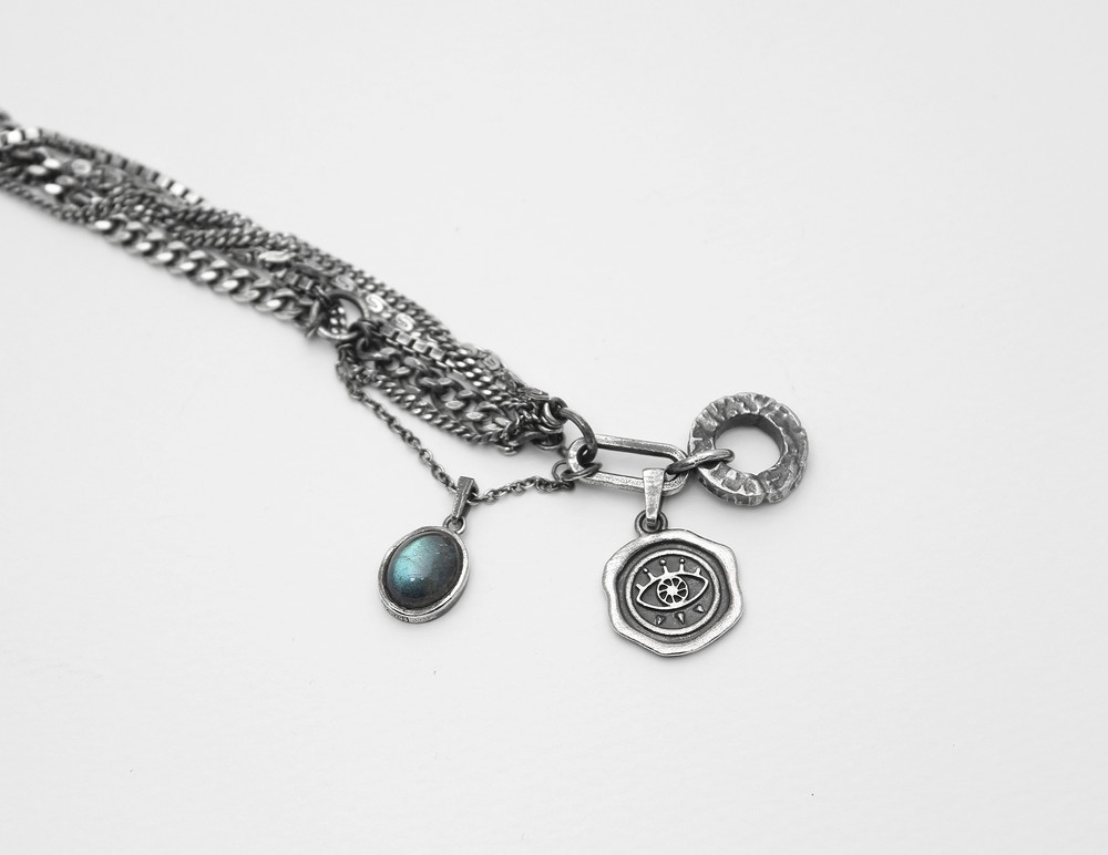 멀티 레이어 참 펜던트 실버 팔찌 MULTI LAYER CHARM BRACELET